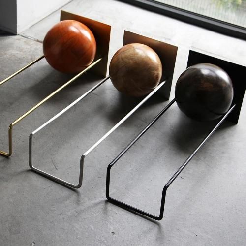 スロープを木製ボールがゆっくり動き、本やレコードなどを抑えてくれるブックエンド。